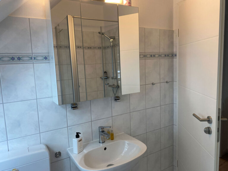- Gemütliches Badezimmer mit Dusche und Haartrockner